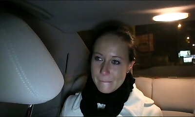 Bright looking in her crimson jacket slut Candy is picked up for car orgy
