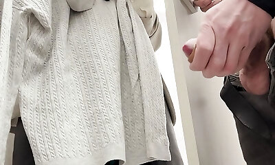 Public dick flash in front of the apparel store assistant ended up with a sucky-sucky and quickie in the changing room