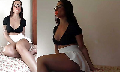 Girl try to simulate a threesome and test an epic sex toy - masculine masturbator
