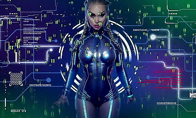 Sci-Fi sex machine. A super sexy brunette gets pummeled by humanoid robot she-male