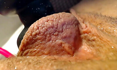 женщина с чрезвычайно огромным клитором ласкает его пальцами в эпизоде крупным планом