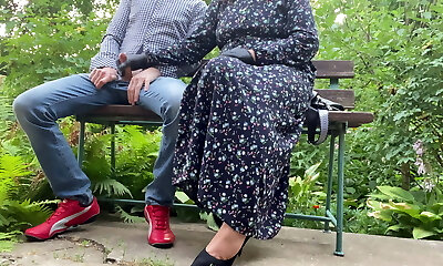 Hot Milf Hand-job, Latex Glove, Cock, Outdoors, Glove for Cuckold Hubby