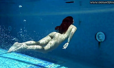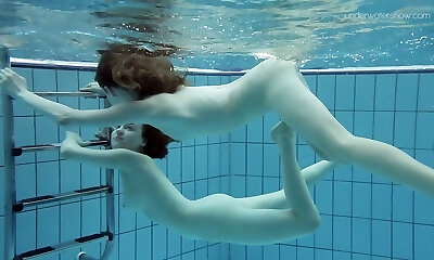Cute teen girl Anna Netrebko swims naked with her GF