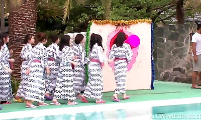 Four lustful lesbians fight on tatami and play filthy games with strapons