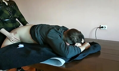 First-timer girl hard Pegging his caboose on the Table - Hot Femdom Strapon