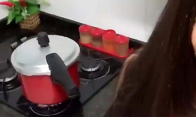 Wild girlfriend doing laundry in the sink