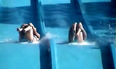 Accidental nipple slip at a water slide