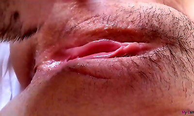 Close up beautiful pussy cumming contractions play ginormous clit