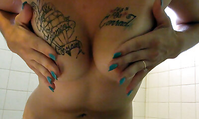 Emo Whore Rubs Pussy In Black Bath Water