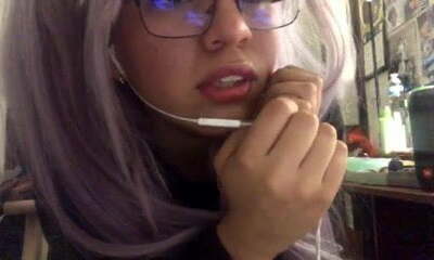 Ebony goth mouth jizzed