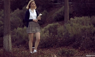 Cute auburn teen Sofy Torn is making love with timid school dude