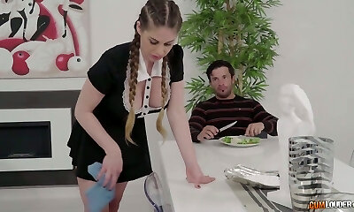 Penis pleasuring act by engaging brunette maid Kirsten