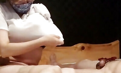Pov movie of Japanese secretary pleasuring his dick in the office